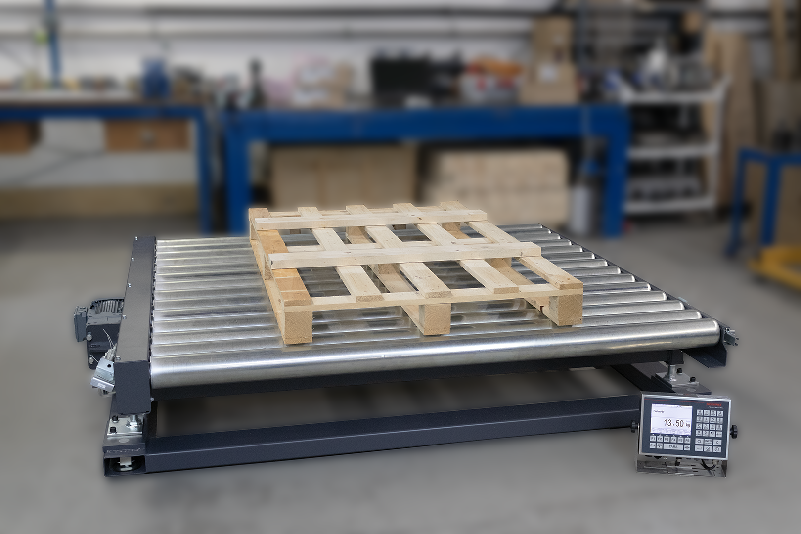 Noch ein interessanter Auftrag aus dem letzten Monat für einen Kunden in Neukaledonien. Die Waage dient der Überlastkontrolle vor dem Einlagerungsprozess von Luftfrachtpaletten und wird direkt vor dem Röntgengerät eingesetzt. Über ein Schaltsignal wird der kundenseitigen Steuerung signalisiert, ob sich das Gewicht unter dem eingestellten Sollwert befindet oder nicht. Unter Sollwert wird das Wägegut zum Lager weiter transportiert, bei Überlast wird das Wägegut umgeleitet.